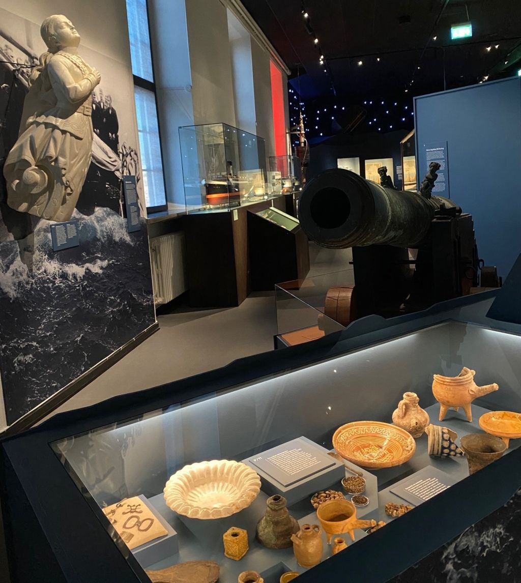 I utställningen Hav av historier visas ett urval av fynd som tagits upp av Göteborgs Amatördykarklubb och dykarklubben Poseidon. Det är främst föremål som kommer från officerarnas del av fartyget såsom ett fåtal delar från sjömännens kläder; husgeråd i keramik och tenn samt djurben och kärnor av olika slag. Bland fynden hittas också små glasflaskor och keramikkärl som användes till dyrbara kryddor, örter, oljor eller sprit till läkemedel.