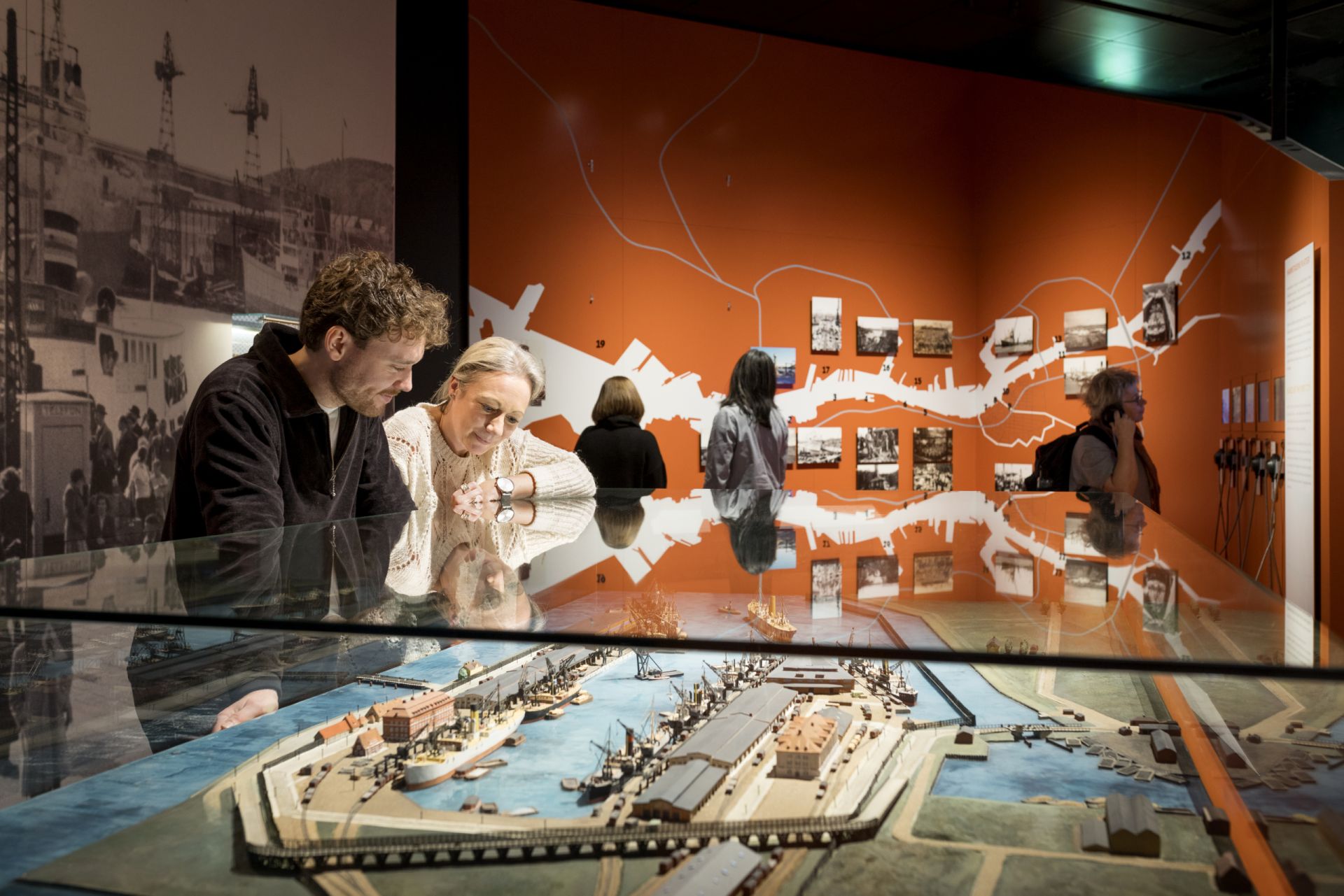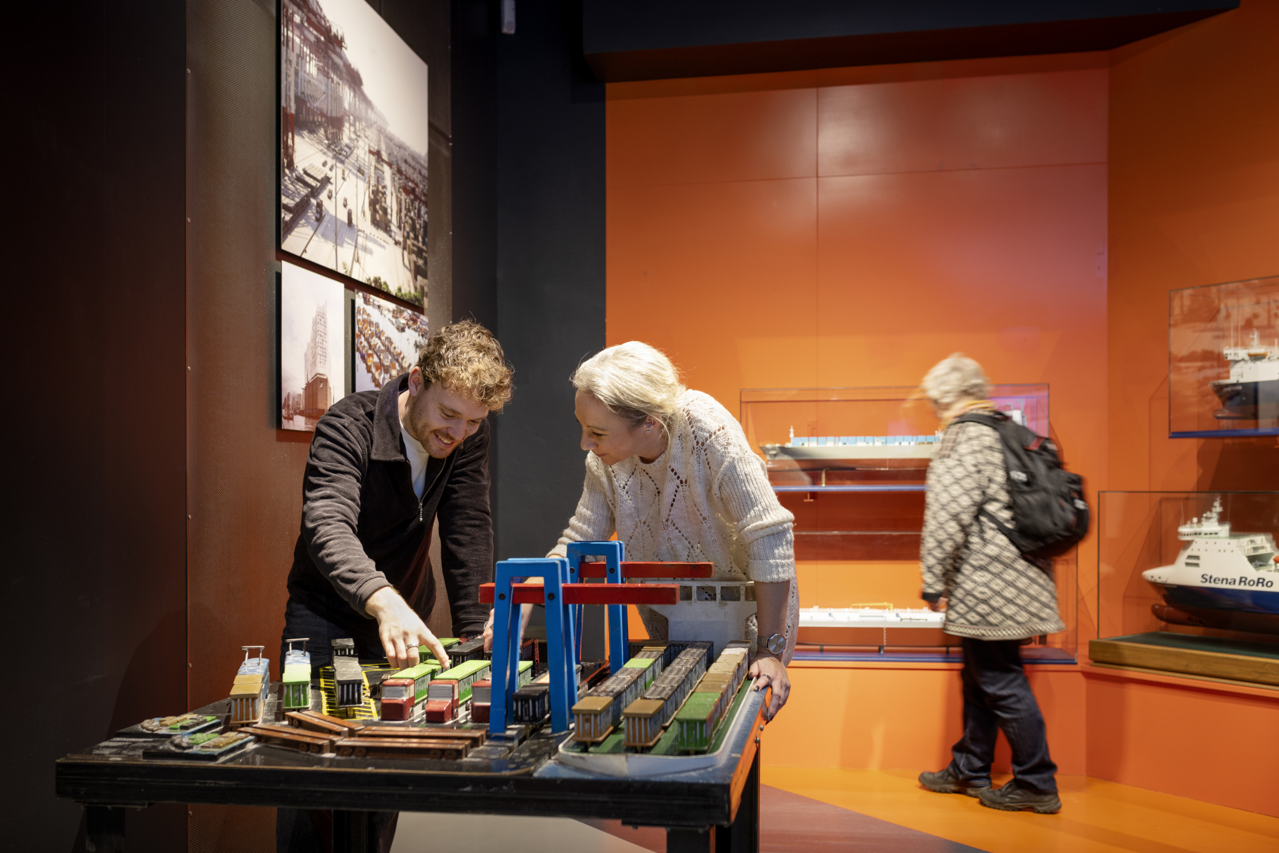 Stad längs vattnet är en kulturhistorisk basutställning som rör sig från det globala hamnsystemet till den lokala kajkanten. I utställningens fyra delar möter du berättelser från hamnstaden.