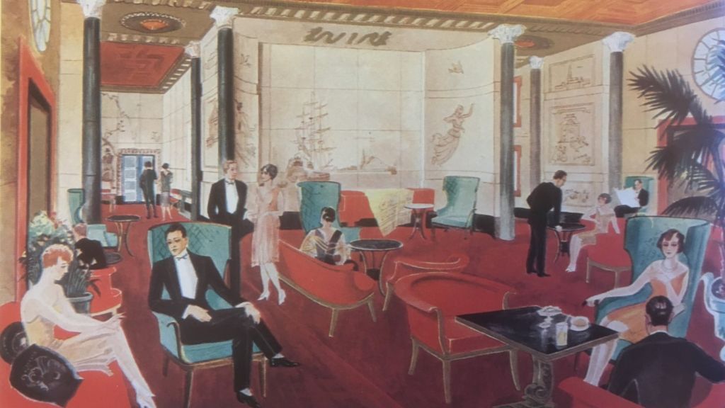 1 klass sällskapsrum på Kungsholm, ”Atlantens vackraste rum”. Det var ombord på det här fartyget, i första klass, som den unge Jan Myrdal korsade Atlanten med sina föräldrar 1938.