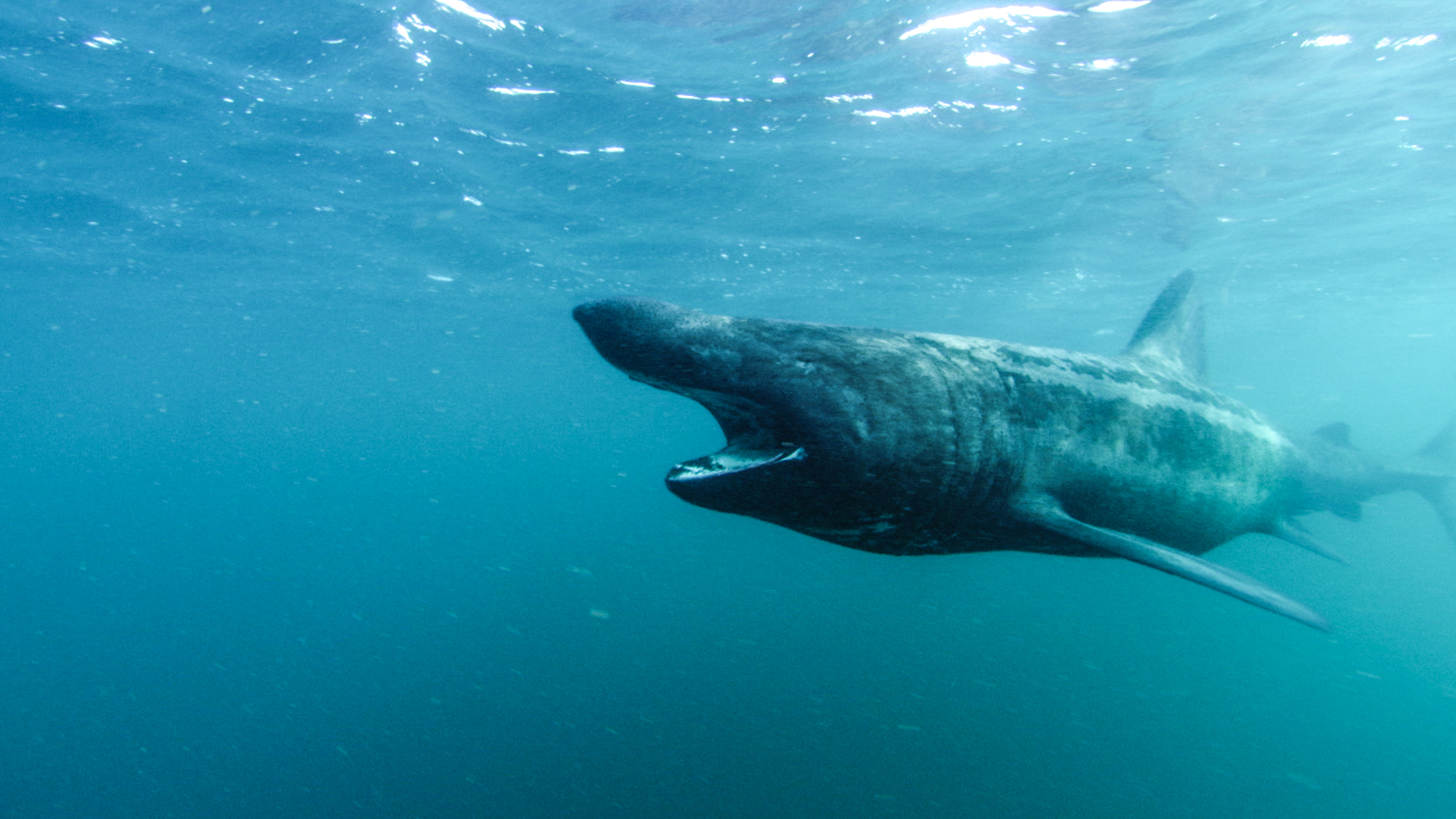 Människor tror ibland att de fått syn på en livsfarlig vithaj, men det är brugdens stora ryggfena som skär genom vattenytan. Trots sin stora käft och skräckinjagande fena är brugden en stillsam haj som är helt ofarlig för människor. Den vandrar långsamt över Nordatlantens ytliga vatten och lever på plankton som hamnar i dess gap. Brugden är en av världens största fiskar men ändå – så gåtfull.