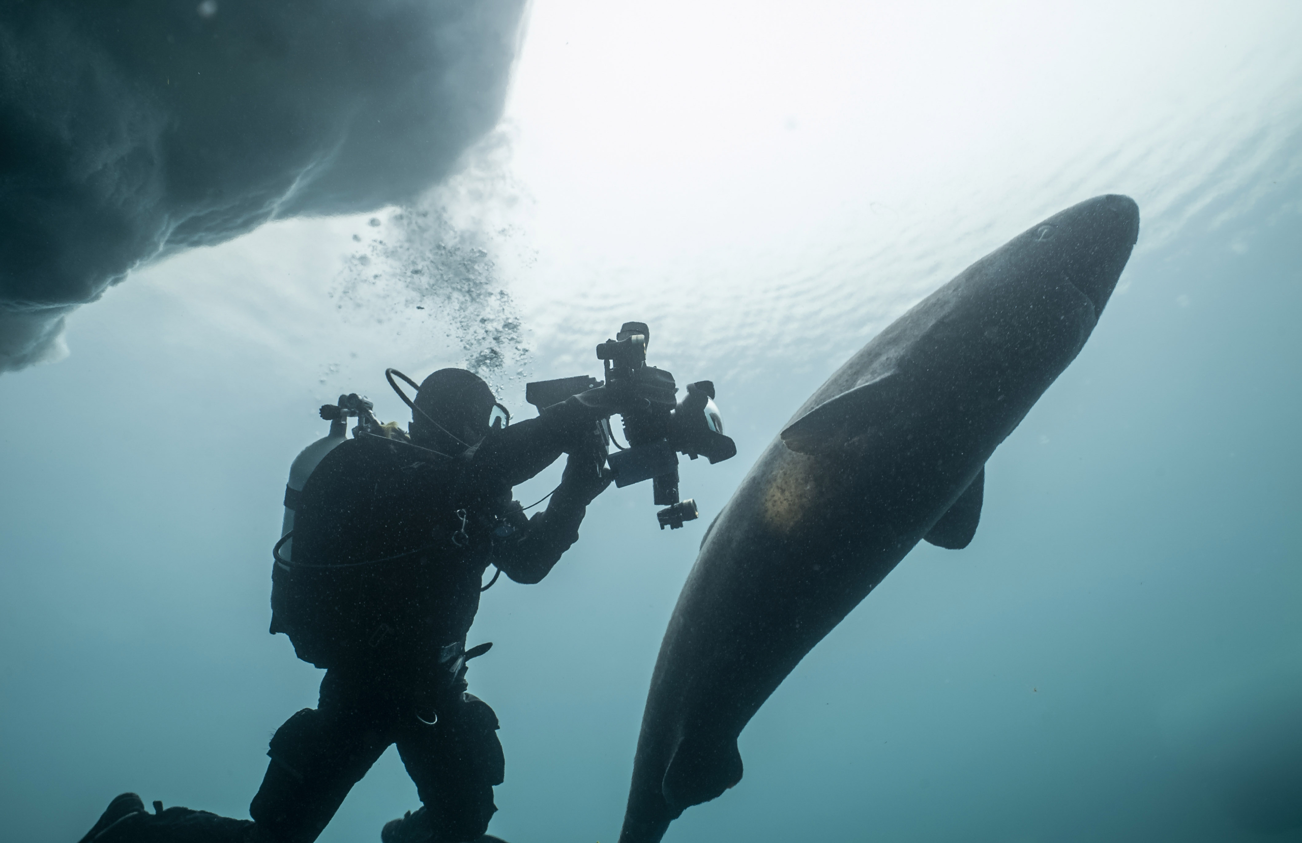 Foto: Christina Karliczek Skoglund i närkontakt med håkäring. © Uli Kunz/Black Coral Film/Doclights