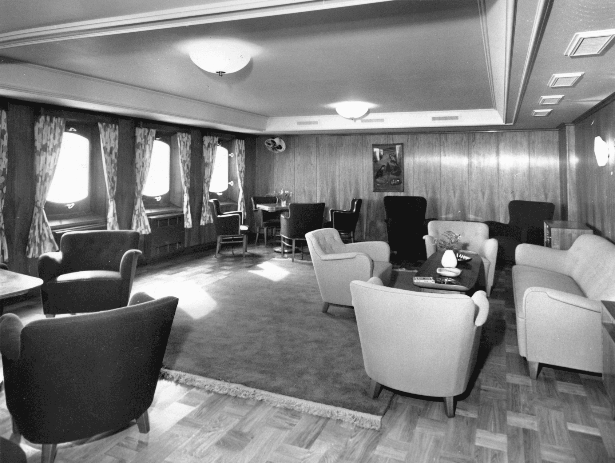 Fartygets röksalong var avsedd för passagerare och befäl. På 1950-talet var det fortfarande vanligt att lastfartyg i linjetrafik tog passagerare innan flyget konkurrerade ut denna trafik.