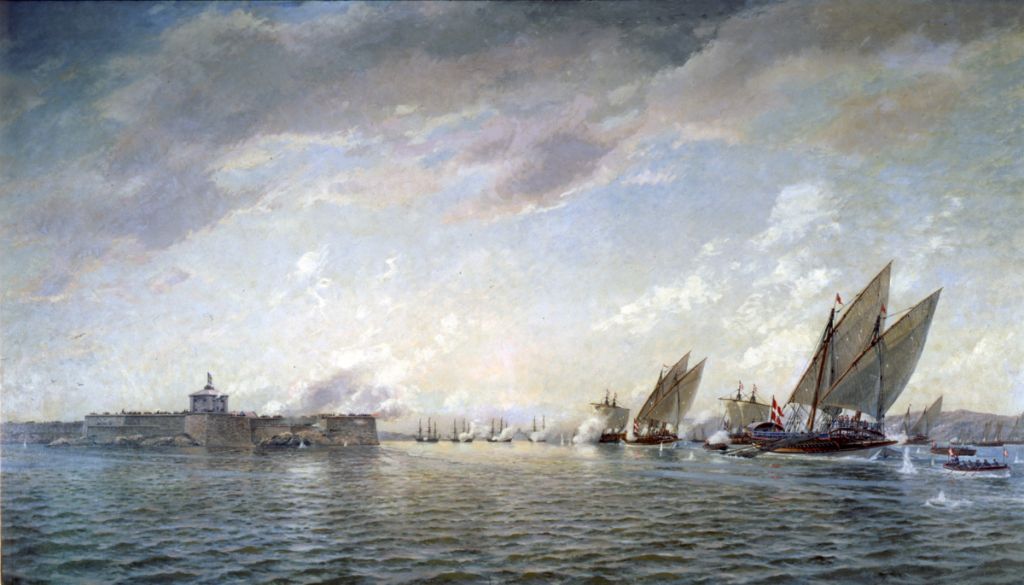 År 1717 gjorde delar av den danska flottan ett försök att angripa Göteborg. Vid den tiden, i slutfasen av det stora nordiska kriget, var Sveriges situation mycket dålig. Men kaparna i Göteborg gjorde stora vinster och varorna som fördes till Göteborg bidrog till att hålla landet igång. Dessutom orsakade kaparfartygen från Göteborg mycket stora problem för danskarna. En blockad mot Göteborg kunde lösa detta, men chefen för den danska flottans blockad Peder Tordenskiöld planerade ett djärvt anfall mot fartygen som låg i Nya Varvet. Men anfallet som skulle komma i gryningen blev försenat och de danska fartygen lyckades aldrig överraska försvararna. Målningen av Jacob Hägg visar hur anfallet slås tillbaka.